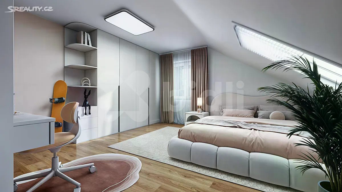 Připravujeme pro vás výstavbu rodinného domu o dispozici 5+kk, se dvěma koupelnami. V projektu je kladen důraz na promyšlené dispoziční uspořádání interiéru. V přízemí se nachází prostorný obývací pokoj s kuchyňským koutem, jeden pokoj, koupelna a technická místnost. V rohu obývacího pokoje se nachází komín, na který je možné připojit krbová kamna. Na terasu se dostanete jak z obývacího pokoje tak z ložnice francouzským oknem. V prvním NP jsou 3 obytné pokoje, koupelna a samostatné WC. Parkování je zajištěno na vlastním pozemku, kde se nachází dvě prostorná parkovací stání. Terasa o rozloze 27 m2 je přizpůsobená pro příjemné posezení. Na pozemku o rozloze 655 m2 lze vybudovat bazén, zahradní domek, pěstování vlastní zeleniny nebo prostorné hřiště pro děti. Cena domu obsahuje vše, co je potřeba ke kolaudaci a bydlení. V ceně je tedy pozemek, dům, zateplení, fasáda, kombinované podlahové topení, okna, dveře, sanita, venkovní žaluzie, tepelné čerpadlo, komín, připojení na IS (voda, elektřina, kanalizace) právní a finanční servis. Přehled standardů naleznete zde. Nad rámec ceny je potřeba počítat s cenou kuchyňské linky a oplocení. Dále je možné se domluvit na individuální sanitě, podlahách, dveří a dalších zařizovacích předmětů. Jako nadstandard možné do domu nainstalovat chytrou domácnost nebo bezpečnostní systém, případně zajistit oplocení ve dvou variantách. Kolaudace léto 2026 Více na develophk cz