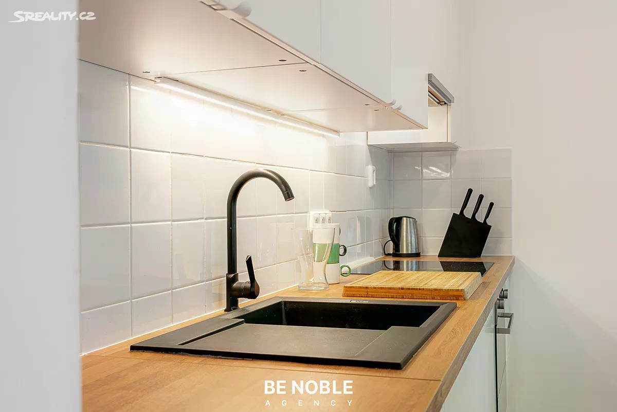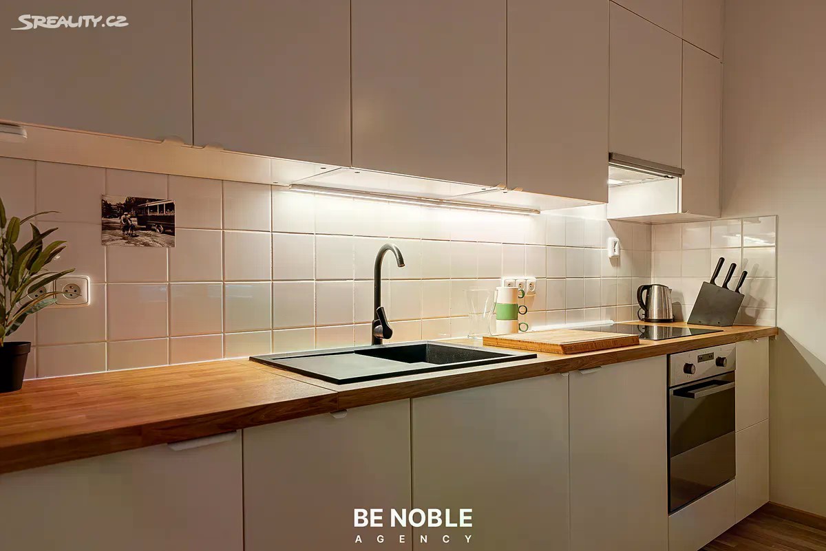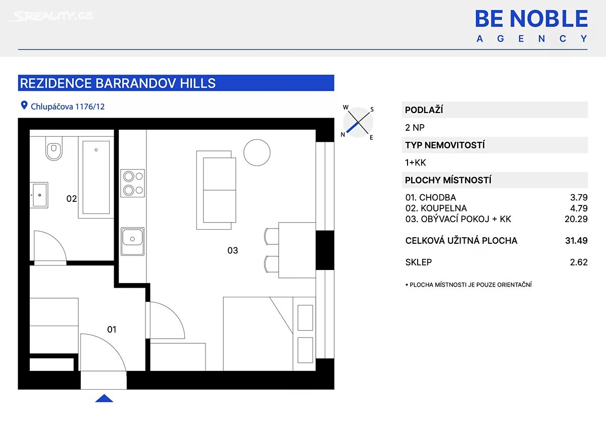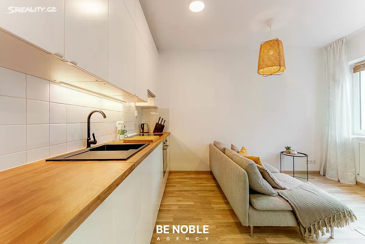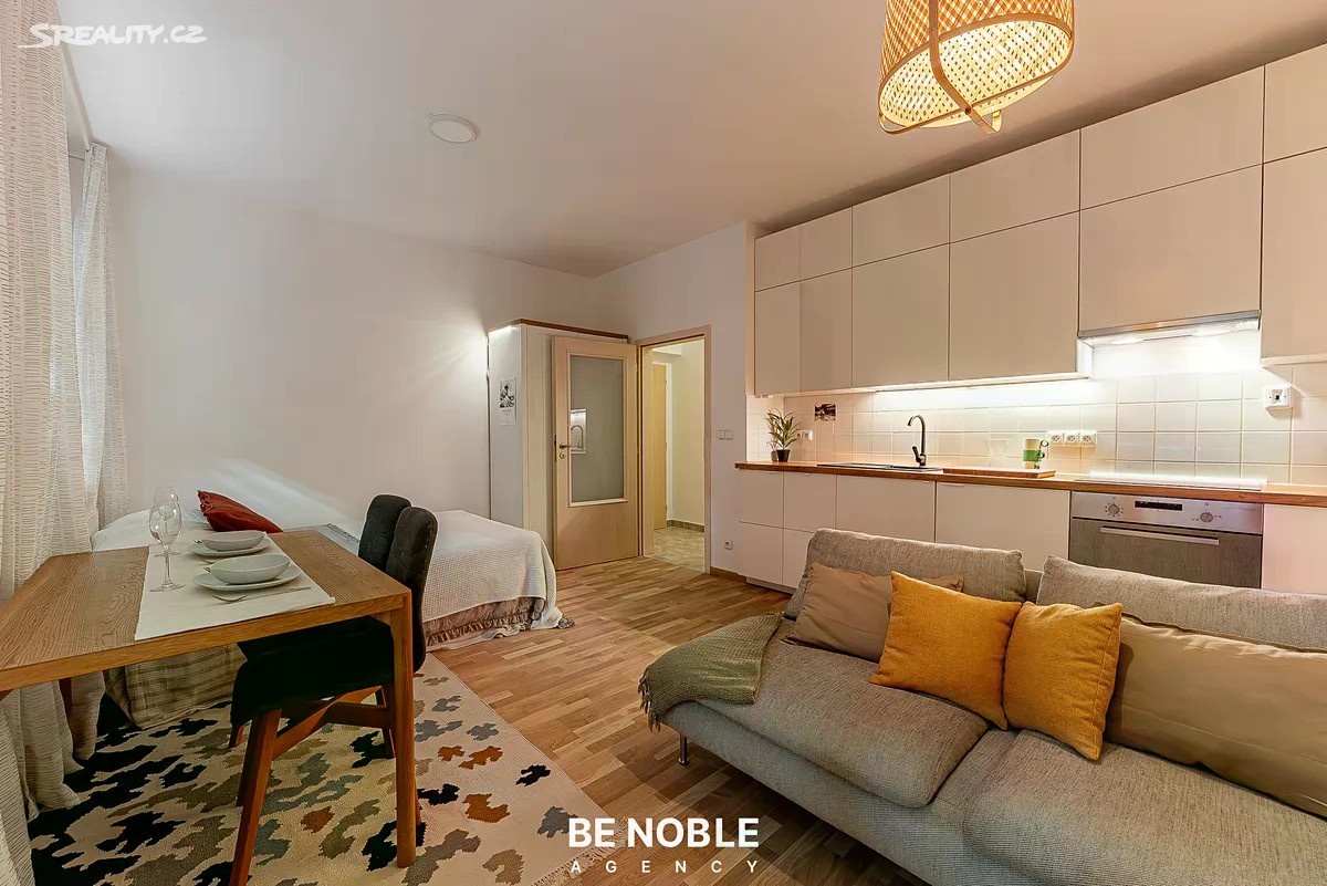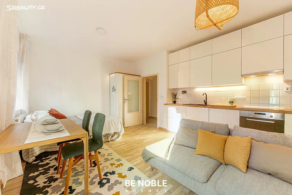 Rádi bychom vám nabídli velmi útulný byt 1+kk o čisté užitné ploše 29 m², který se nachází v ulici Chlupáčova v oblíbené rezidenční části Prahy - Barrandov. Byt zaujme především svojí světlostí, jižní orientací a celkově příjemnou atmosférou, kterou vytváří kombinace promyšlené dispozice a kvalitního provedení. Součástí nabídky je také sklep o výměře 2,5 m², což výrazně zvyšuje komfort bydlení i investiční potenciál. Dominantou bytu je prostorný obývací pokoj (20,3 m²) se dvěma velkými okny, který působí velmi vzdušně a umožňuje snadné rozdělení na obytnou, spací a jídelní část. Kuchyňská linka je světlá, vybavená, provedená až ke stropu a doplněná příjemným podsvícením s dálkovým ovládáním a dřevěnou pracovní deskou. Byt je po čerstvé obnově - má novou dřevěnou podlahu, kompletní výmalbu, kotel po servisu a nové osvětlení, takže je připraven k okamžitému nastěhování bez nutnosti dalších investic. V předsíni (3,8 m²) je dostatek prostoru pro umístění skříně a dalších úložných řešení. Koupelna (4,8 m²) je čistá a zachovalá, vybavená vanou s novou baterií a pračkou s funkcí sušičky, kterou lze případně doplnit o samostatnou sušičku. O vytápění i ohřev teplé vody se stará vlastní plynový kotel, který spolu s energetickým štítkem PENB „C“ zajišťuje velmi nízké měsíční provozní náklady. K bytu je možnost dokoupit podzemní parkovací stání v garáži za cenu 550 000 Kč, přičemž celková cena za byt se sklepem a parkovacím stáním činí 6 450 000 Kč. Byt se nachází v úrovni 2. nadzemního podlaží udržovaného bytového domu, je světlý, tichý a nabízí skutečně příjemný pocit útulnosti a komfortu. Dům je součástí projektu Barrandov Hills z roku 2011 od renomovaného developera Crestyl, který si dlouhodobě drží vysoký standard. Obyvatelům je k dispozici společná zahrada, klidný vnitroblok a také 24hodinová vrátnice s ostrahou. Lokalita Barrandova je dlouhodobě velmi vyhledávaná díky kombinaci kompletní občanské vybavenosti, dobré dopravní dostupnosti a klidného rezidenčního prostředí. V bezprostředním okolí najdete obchody, služby, restaurace i známé Barrandovské filmové ateliéry. Do centra Prahy se pohodlně dostanete MHD, a to jak rychlotramvají, tak autobusem s přímým napojením na Budějovickou. Cesta autem je rovněž velmi snadná, přesto je byt umístěn tak, že zde hluk z dopravy prakticky neuslyšíte. Jedná se o ideální bydlení jak pro vlastní užívání, tak jako investiční příležitost, jelikož podobné byty se v této lokalitě velmi dobře a rychle pronajímají. Pokud vás nabídka zaujala, neváhejte nás kontaktovat a rádi vás přivítáme na osobní prohlídce. Be Noble agency