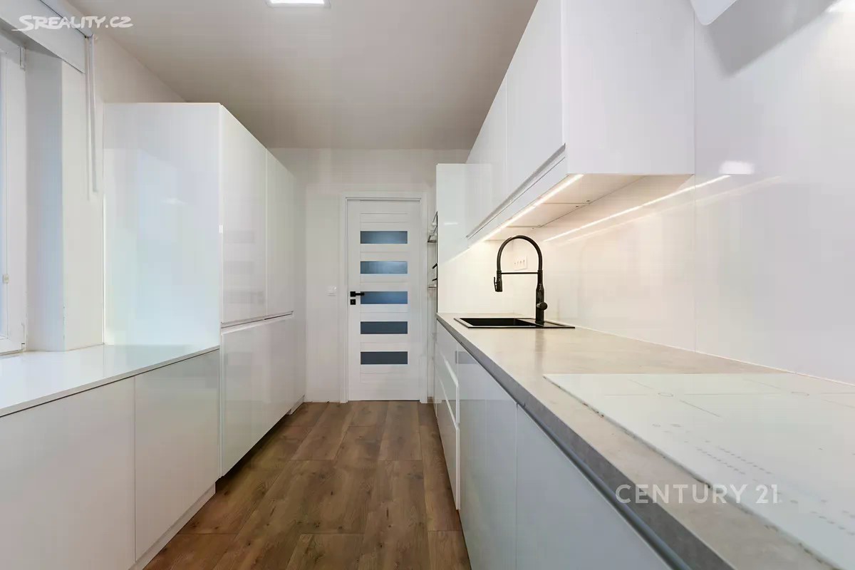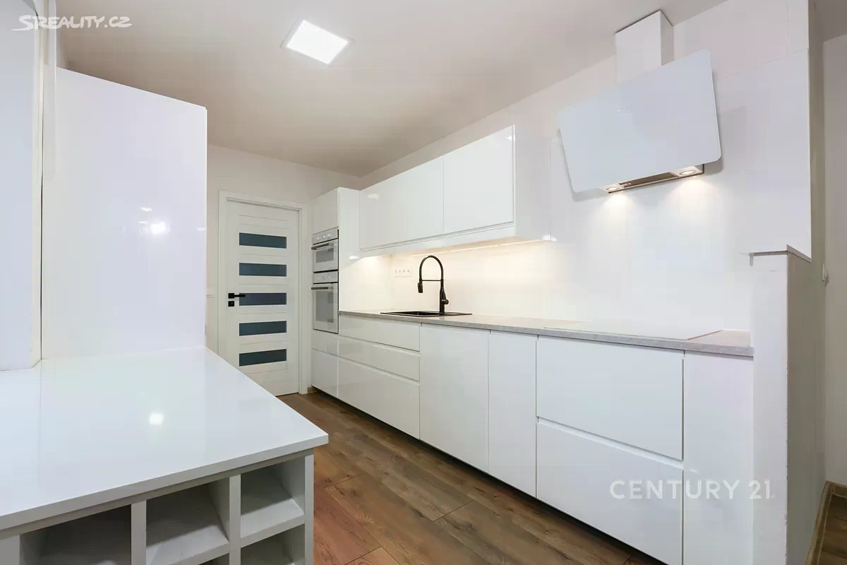 Nabízíme k prodeji krásný byt 4+kk po nadstandardní rekonstrukci v osobním vlastnictví o velikosti 87 m². Byt se nachází ve 3. patře panelového domu v ulici Česká v Mostě a prodává se kompletně vybavený. Dispozice a vybavení: • Moderní bílá lesklá kuchyňská linka s vestavnými spotřebiči (lednice, myčka, elektrická trouba, sklokeramická deska, mikrovlnná trouba a digestoř) • Stylová koupelna se sprchovým koutem, velkoformátovými obklady, pračkou, sušičkou, skříňkou pod umyvadlo, zrcadlem a WC • Obývací a jídelní prostor je sladěn do stejného designu jako kuchyně, je klimatizován a má vstup na zasklenou lodžii. Je zde sedačka, konferenční stolek, TV stěna, koberec a jídelní stůl se židlemi • Ložnici dominuje velká postel. Nadstandardní je přilehlá šatna • Dětské pokoje plně vybavené v bílo šedém provedení • Ve všech místnostech jsou moderní interiérové dveře a plovoucí podlahy • Předsíň s dostatkem místa a odkládací stěnou se skříní Další výhody: • Dům má pouze jeden vchod, je v dobrém technickém stavu • Veškerá občanská vybavenost v docházkové vzdálenosti: 15. ZŠ, školky, obchody, MHD. Pro více informací a domluvení prohlídky mě neváhejte kontaktovat. S případným financováním vám rádi pomůžeme.