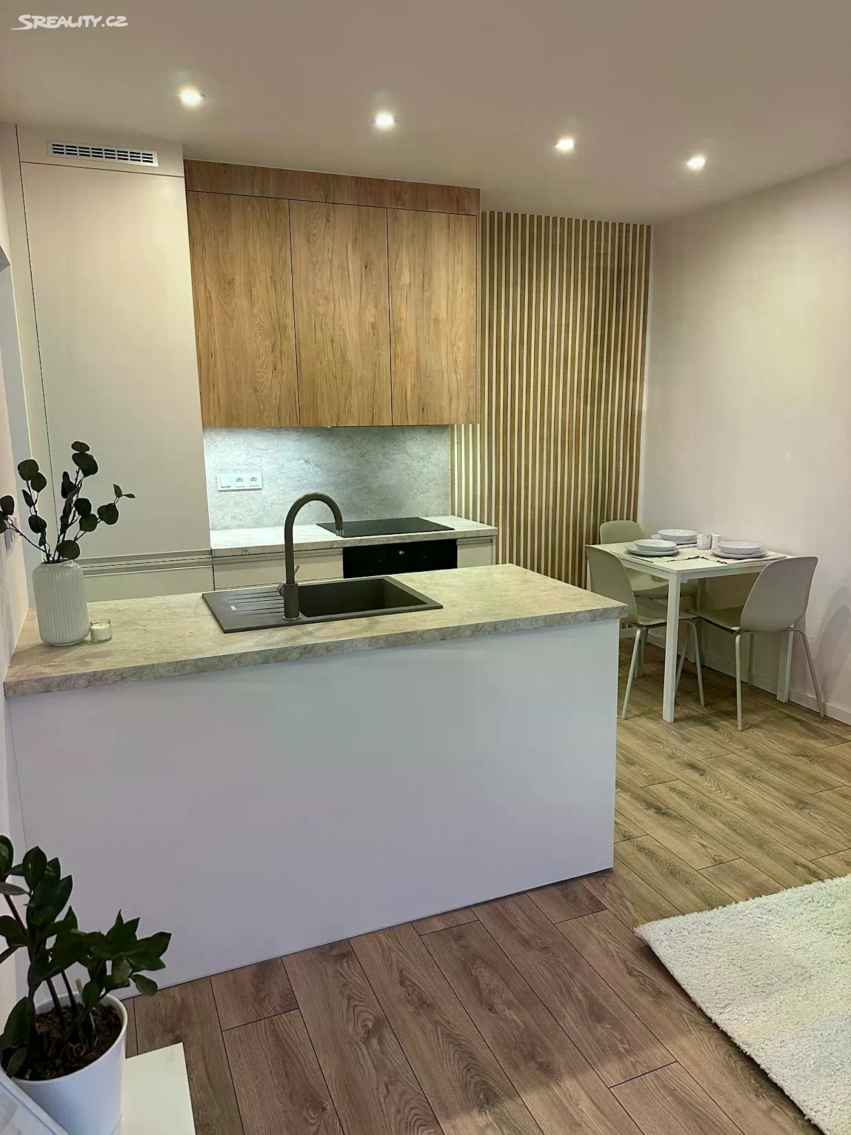 Nabízíme k prodeji moderní světlý byt o velikosti 3+kk ve čtvrtém patře osmipatrového domu s výtahem a balkonem o celkové ploše 56 m2. V bytě byla nyní dokončena kompletní rekonstrukce, která zaručuje vysoký standard bydlení a moderní estetiku. Nová elektroinstalace, voda, odpady, sádrokartonové stropy, nivelace, vinylové podlahy, nové jádro se sprchovým koutem a podlahovým topením, velkoformátové obklady, samostatné závěsné WC s bidetovou sprškou, obložkové dveře, nové vstupní dveře, nová kuchyňská linka. V bytě po rekonstrukci ještě nikdo nebydlel. Moderně laděná koupelna nabízí sprchový kout s podsvětlenou odkládací plochou (nikou), podlahové topení, prostorné umyvadlo s podsvíceným zrcadlem, přípravu pro pračku, sušičku a topný žebřík. V bytě je nadstandardní kuchyň na míru od truhláře včetně myčky na nádobí, indukční varné desky a ostatních vestavěných spotřebičů. Dům je po revitalizaci - plastová okna, zateplená fasáda, balkóny, udržované společné prostory. Jedná se o lokalitu, která nabízí dostatek zeleně. V bezprostředním okolí je veškerá občanská vybavenost. V blízkosti je také školka, dětské hřiště, park Skalka a cyklostezka. Parkování k dispozici před domem. Dobrá dostupnost do centra města. Byt je v osobním vlastnictví. Prodej probíhá bez účasti realitní kanceláře, poprosím makléře, aby mne ve věci zprostředkování prodeje nekontaktovali.