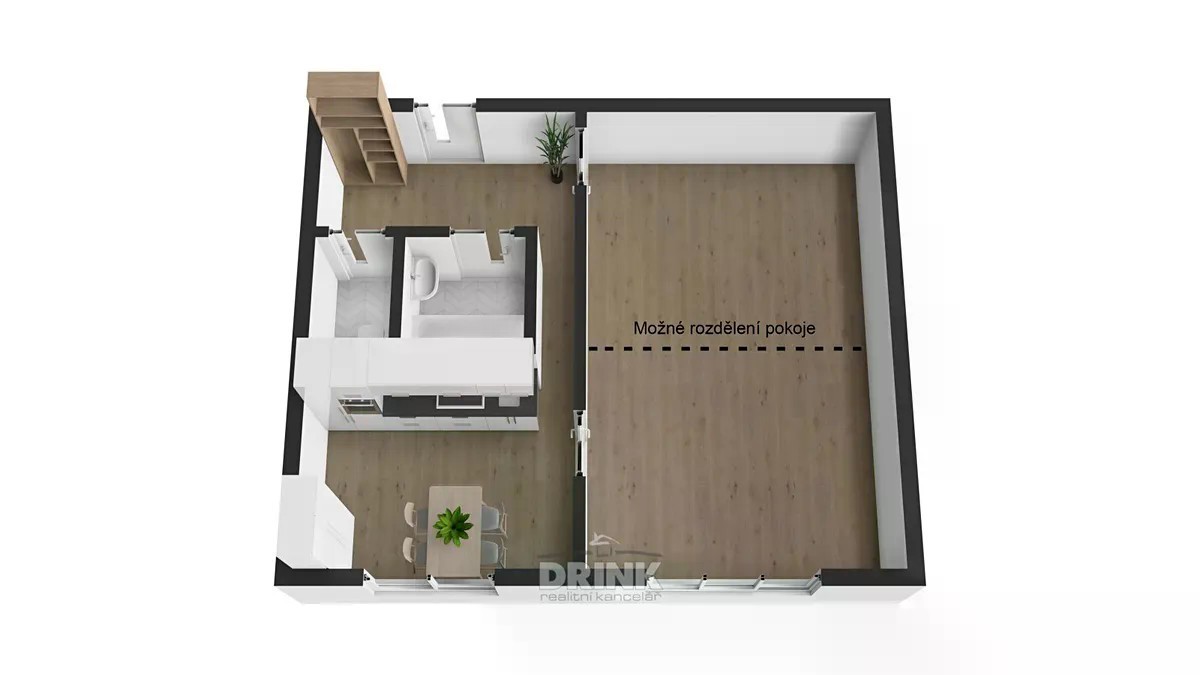 Nabízíme k prodeji prostorný byt 1+1 v osobním vlastnictví, umístěný ve 3. nadzemním podlaží bytového domu s výtahem v ulici Na Radouči v Mladé Boleslavi. Byt je orientován na jihovýchod, s okny situovanými mimo hlavní komunikaci, což zajišťuje klidné a příjemné bydlení. Byt má zděné bytové jádro a praktické dispoziční řešení. Skládá se z kuchyně, prostorného pokoje, předsíně, koupelny, samostatné toalety a sklepa. Díky velikosti a rozložení bytu je zde reálná možnost jednoduché úpravy dispozice na menší 2+1 se samostatnými vstupy do jednotlivých pokojů (viz půdorys). Byt má plastová okna, elektroinstalace je v původním stavu. Dům je udržovaný a nachází se v klidné části města. Nemovitost je vhodná jak pro vlastní bydlení, tak i jako investice k pronájmu. Lokalita nabízí kompletní občanskou vybavenost - v docházkové vzdálenosti jsou obchodní centra, zastávky MHD, poliklinika, základní i mateřské školy a další služby. V blízkosti je také vyhledávaná národní přírodní rezervace Radouč a Nový park.