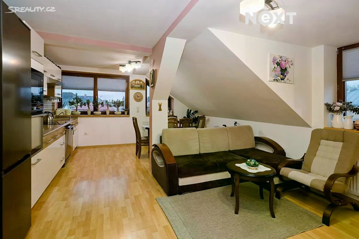 Nabízíme k prodeji prostorný byt o dispozici 3 + kk, který se nachází v centru obce. Tento útulný byt je situován ve 3. nadzemním podlaží cihlové budovy, která má celkem 3 nadzemní podlaží. Byt je v osobním vlastnictví a jeho užitná plocha činí 69 m2. Byt je plně vybaven a připraven k okamžitému nastěhování. Všechny místnosti jsou vkusně zařízené a nabízejí dostatek prostoru pro pohodlné bydlení. Kuchyňský kout je propojen s obývacím pokojem, což vytváří příjemnou a otevřenou atmosféru. Vytápění je zajištěno ústředním plynovým topením, což zaručuje komfortní teplotu po celý rok. Díky umístění v centru obce máte veškerou občanskou vybavenost na dosah ruky. V okruhu 1,5 km se nachází supermarket, což usnadňuje každodenní nákupy. Dopravní dostupnost je vynikající, a to jak pro cestování autem, tak i veřejnou dopravou. V blízkosti se nachází vlakové nádraží, autobusové zastávky a snadný přístup k dálnici, což zajišťuje rychlé spojení do okolních měst a regionů. Tento byt je ideální volbou pro ty, kteří hledají komfortní bydlení v centru s výbornou dostupností a veškerým potřebným vybavením. V domě, ve kterém je byt umístěn má pouze čtyři bytové jednotky, má uzavřený dvůr s možností parkování a pro obyvatele domu je k dispozici i venkovní posezení pod pergolou. Neváhejte a přijďte se přesvědčit osobně o všech výhodách, které tento byt nabízí. Pro komunikaci uvádějte evidenční číslo zakázky N115485.