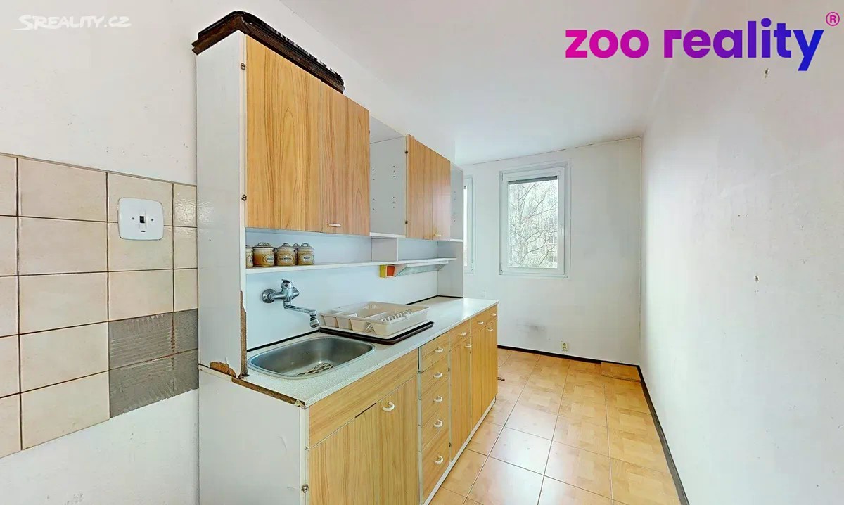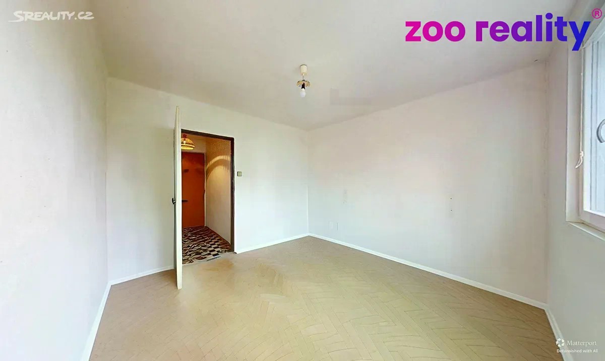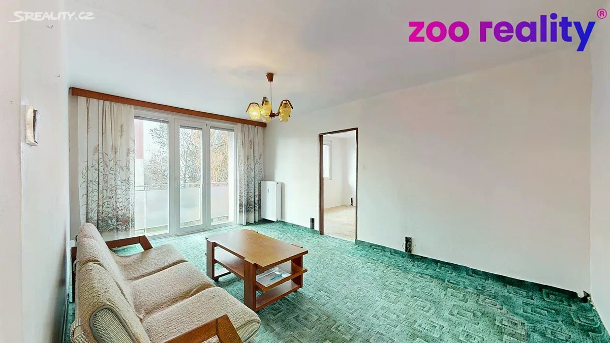 Prodej bytu 3+1 s balkonem (3 m2) a příslušenstvím - sklep (2,5 m2), v osobním vlastnictví, o celkové užitné ploše 67 m2 + balkon. Jednotka se nachází ve 3. patře (4.NP), revitalizovaného panelového domu, s novým výtahem a je původní se starším zděným bytovým jádrem vhodná spíše pro rekonstrukci dle vlastní úvahy. Po určitých úpravách je možné i pozměnit celkovou dispozici bytu, která je současně od zádveří do prvního pokoje (11 m2) hned u dveří a následně do chodby, z které vstupujeme na WC, do kuchyně se samostatným vstupem do koupelny a dále pak do obýváku (18 m2) se vstupem do posledního pokoje (14 m2). Venkovní stěny byly z interiéru v minulosti také dodatečně zaizolovány. Dům je bez dluhů a závazku, nízké měsíční náklady, snížený fond oprav. K objektu náleží také pozemek okolo domu, který je částečně užíván jako vlastní parkoviště. Vybavenost a služby v docházkové vzdálenosti, lokalita nad nemocnicí, více k občanské vybavenosti v odkazech jednotlivých serverů pod inzerátem či internetových mapách. Dispozici bytu si můžete projít i ve virtuální prohlídce s možností zoomu, měření, aj. Více informací rád sdělím na dotaz, či na prohlídce.