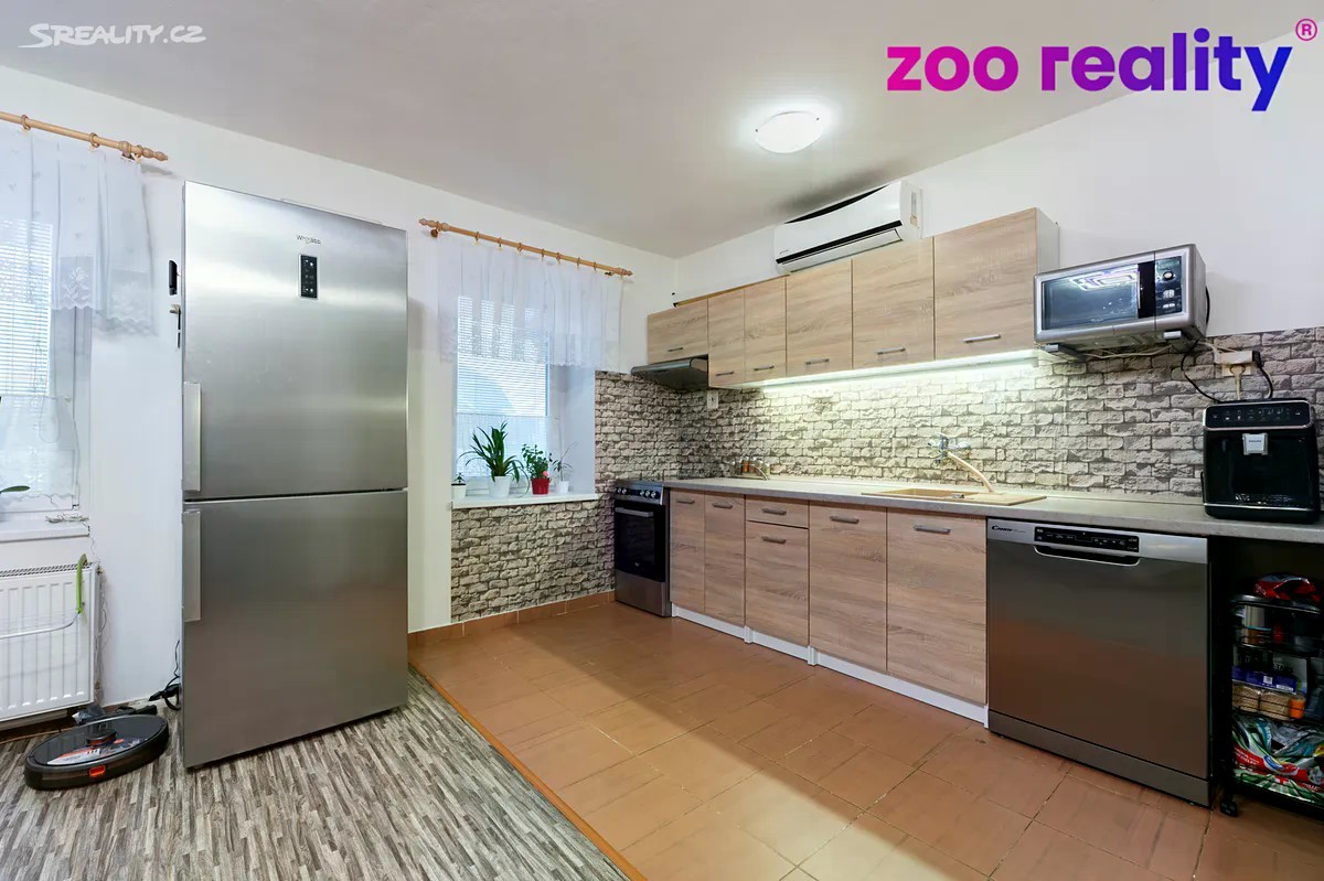 Dobrý den, k prodeji nabízím prostorný rodinný dům v obci Velký Újezd, která spadá pod obec Chorušice. Lokalita se nachází přibližně 10 km severovýchodně od Mělníka a nabízí klidné bydlení na venkově s výbornou dostupností služeb. V obci žije zhruba 250 obyvatel, což zajišťuje příjemnou atmosféru a dostatek soukromí. Veškerá občanská vybavenost - obchody, škola, školka i další služby - se nachází v nedalekém Mšeně, vzdáleném necelé 4 km. Právě Mšeno je považováno za vstupní bránu do chráněné krajinné oblasti Kokořínsko, která nabízí nespočet možností výletů, turistiky i aktivního odpočinku doslova za rohem. Dům a dispozice Dům o celkové užitné ploše přes 250 m² je rozdělen do dvou podlaží a nabízí velmi variabilní využití - ideální pro vícegenerační bydlení, velkou rodinu nebo kombinaci bydlení a podnikání. Přízemí: Garáž, dílna, kotelna, koupelna, kuchyně a velký obyvatelný pokoj, který lze využít jako samostatné zázemí pro část rodiny, hosty nebo pro různé volnočasové či pracovní aktivity. První patro: Bytová jednotka o dispozici 4+kk. Po vstupu do patra je dům velmi chytře rozdělen - vlevo se nachází pokoje, vpravo prostorný obývací pokoj propojený s kuchyní. Toto uspořádání zajišťuje klid a soukromí pro všechny členy domácnosti. V patře je dále hlavní koupelna a samostatná toaleta. Součástí domu je také klenutý sklep a prostorná půda, která nabízí další potenciál k využití. Exteriér Před domem se nachází dlážděný dvůr s pojezdovou bránou, další garáž, malá dílna a kryté posezení s venkovním grilem. Nad domem je příjemná zahrádka, ideální pro dětské hry, relaxaci nebo posezení na čerstvém vzduchu. Celková plocha pozemku činí 485 m². Technické informace: - voda: vodovodní řád - odpad: jímka o objemu 18 m³ - vytápění a ohřev vody: kotel na tuhá paliva Přestože se jedná o starší dům, interiér působí velmi příjemně, čistě a suchým dojmem. Dům je přizpůsoben rodinnému životu, bez pocitu chladu od podlah či jiných běžných neduhů starších staveb. Atmosféra domu je klidná a přívětivá - ideální pro rodinu s dětmi. Pokud hledáte prostorné bydlení v klidné lokalitě s výjimečným okolím, tento dům rozhodně stojí za prohlídku. Zavolejte a rád Vám dům osobně představím. S pozdravem Jiří Tschiharsch