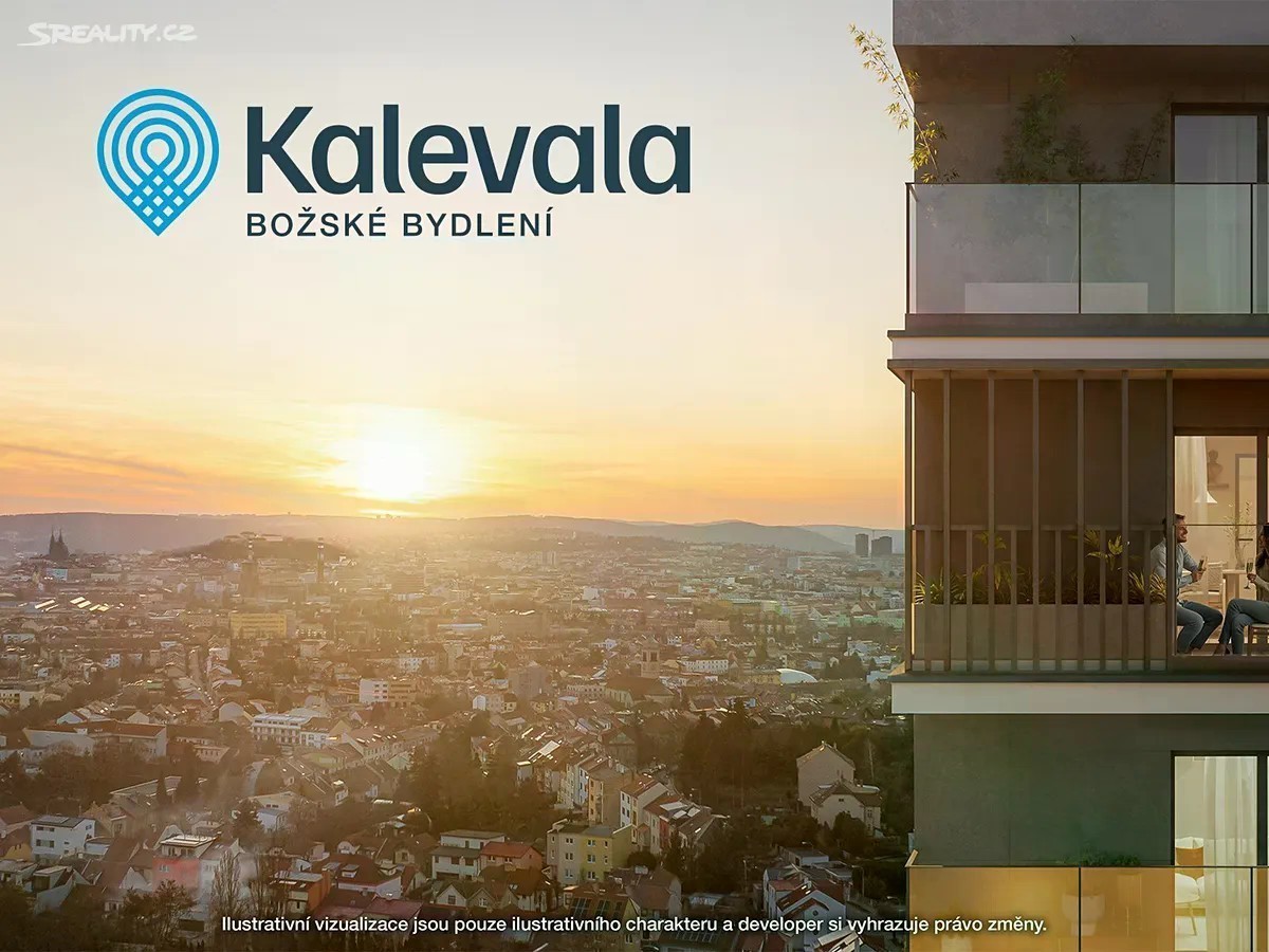 Byt 1+kk o celkové rozloze 31,6 m² je situován v 5.NP projektu KALEVALA etapy UKKO. Cena zahrnuje bytovou jednotku, sklepní kóji a DPH. Cena parkovacího stání od 660 000 Kč včetně DPH. Bytový dům UKKO zahrnuje dvě části budovy - dominantní věž s patnácti a nižší se sedmi nadzemními podlažími. Vyroste mezi ulicemi Viniční, Šedova a Líšeňská. Přinese 183 bytových jednotek a 13 ateliérů o dispozicích 1+kk až 4+kk s velikostmi od 27 m² do 105 m². K většině bude náležet lodžie, terasa či předzahrádka. Součástí se stane také komerční prostor v přízemí věže. Samozřejmostí je dostatek parkovacích stání, sklepních kójí a komor, kočárkárny a místnost pro mytí kol a psů. UKKO tvoří dvě vzájemně pootočené obdélníkové části, jež přirozeně kopírují terén a harmonicky zapadají do nadčasové podoby budoucí čtvrti. Vyšší z obou částí - elegantní věž umístěná ve středu areálu - se stane nejen jeho vizuální dominantou, ale také přirozeným centrem komunitního života. V jejím okolí vznikne prostor pro setkávání, odpočinek i aktivní trávení volného času.