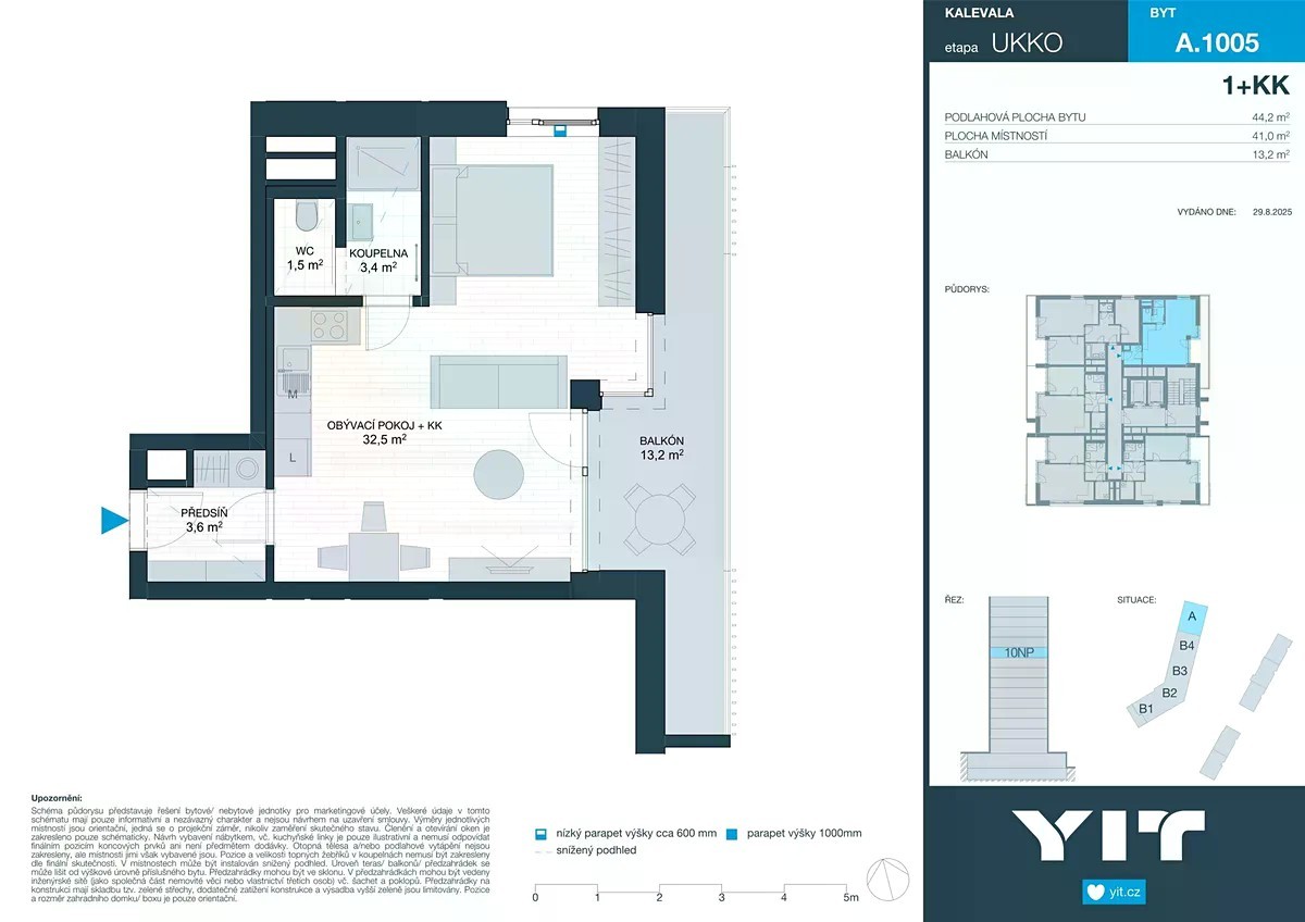 Byt 1+kk o celkové rozloze 44,2 m² je situován v 10.NP projektu KALEVALA etapy UKKO. Cena zahrnuje bytovou jednotku, sklepní kóji a DPH. Cena parkovacího stání od 660 000 Kč včetně DPH. Bytový dům UKKO zahrnuje dvě části budovy - dominantní věž s patnácti a nižší se sedmi nadzemními podlažími. Vyroste mezi ulicemi Viniční, Šedova a Líšeňská. Přinese 183 bytových jednotek a 13 ateliérů o dispozicích 1+kk až 4+kk s velikostmi od 27 m² do 105 m². K většině bude náležet lodžie, terasa či předzahrádka. Součástí se stane také komerční prostor v přízemí věže. Samozřejmostí je dostatek parkovacích stání, sklepních kójí a komor, kočárkárny a místnost pro mytí kol a psů. UKKO tvoří dvě vzájemně pootočené obdélníkové části, jež přirozeně kopírují terén a harmonicky zapadají do nadčasové podoby budoucí čtvrti. Vyšší z obou částí - elegantní věž umístěná ve středu areálu - se stane nejen jeho vizuální dominantou, ale také přirozeným centrem komunitního života. V jejím okolí vznikne prostor pro setkávání, odpočinek i aktivní trávení volného času.