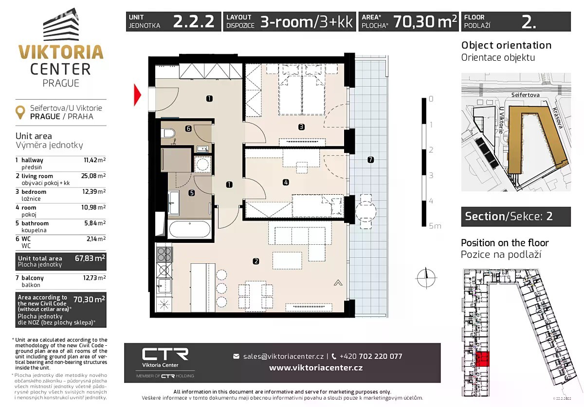 Výjimečný byt 3+KK o ploše 70 m2 s balkónem 12,7 m2 a sklepem 3,9 m2 v oblíbené lokalitě Žižkov. Byt je orientován do uzavřeného vnitrobloku, všechny pokoje mají přístup na balkon. Obývací pokoj i ložnice jsou orientovány na východ, koupelna s vanou i sprchovým koutem. Byt je svojí dispozicí a umístěním vhodný k vlastnímu bydlení, ale i jako investice na pronájem. Je zařízen kuchyňskou linkou včetně spotřebičů (lednice, trouba, indukční varná deska, mikrovlnná trouba, myčka), vestavěnou skříní v předsíni, koupelnovým nábytkem, včetně osvětlení a konzolí na závěsy. K bytu je možné přikoupit garážové stání v budově. Kvalitní provedení a vybavení, předokenní žaluzie, dřevěná okna s izolačními trojskly, velkoformátové obklady a dlažby v koupelnách, sanita Laufen Pro, bidetové sprchy, dubové podlahy s podlahovým vytápěním, nadstandardní výška dveří 2,1 m, videotelefon, přístupy do budovy na čip. Centrum města s veškerou občanskou vybaveností, zastávka MHD před domem, ale i blízkost parku a zeleně (Riegrovy sady 5 minut pěšky), v sousedství Vysoké školy ekonomické v Praze, v okolí mnoho restaurací a všechny služby. Pro bližší informace a prohlídku nás kontaktujte. Exceptional 3+kitchen apartment with an area of 70 m2 with a balcony 12,7 m2 and a cellar of 3,9 m2 in the popular location of Žižkov. The apartment is oriented to a private courtyard, all rooms have access to the balcony. The living room and bedroom are oriented to the east. Bathroom with bathtub and shower. The apartment is suitable for own living, but also as an investment for rent. It is furnished with a kitchen unit including appliances (fridge, oven, induction hob, microwave oven, dishwasher), a built-in wardrobe in the hallway, bathroom furniture, including lighting and curtain brackets. It is possible to purchase a garage space in the building with the apartment. High-quality design and equipment, window blinds, wooden windows with triple-glazed insulation, large-format tiles and floor tiles in the bathrooms, Laufen Pro sanitary ware, bidet showers, oak floors with underfloor heating, above-standard door height of 2.1 m, videophone, chip access to the building. City center with all civic amenities, public transport stop in front of the house, but also close to the park and greenery (Riegrovy sady 5 minutes walk), in the neighborhood of the University of Economics in Prague, many restaurants and all services in the area. For more information and a tour, contact us.